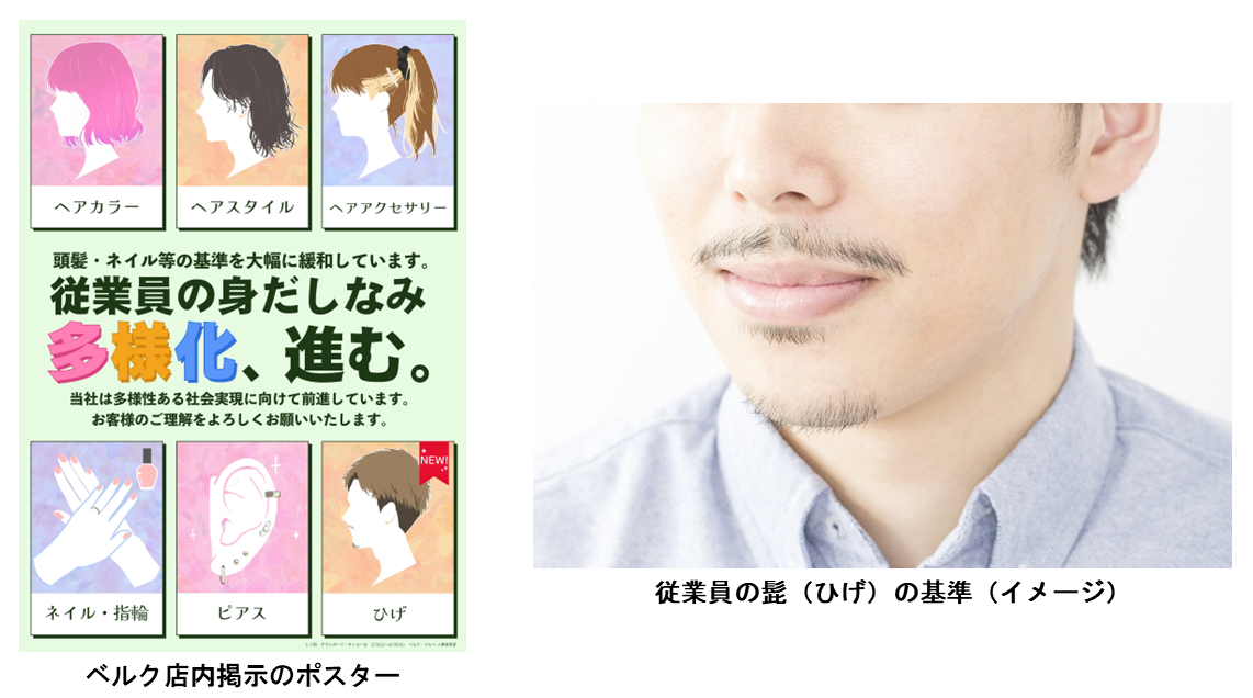 ベルクでは髭も個性の一つと捉えており、今後も「身だしなみの前提条件」を守りながら、必要な範囲で基準緩和を進めていきます。