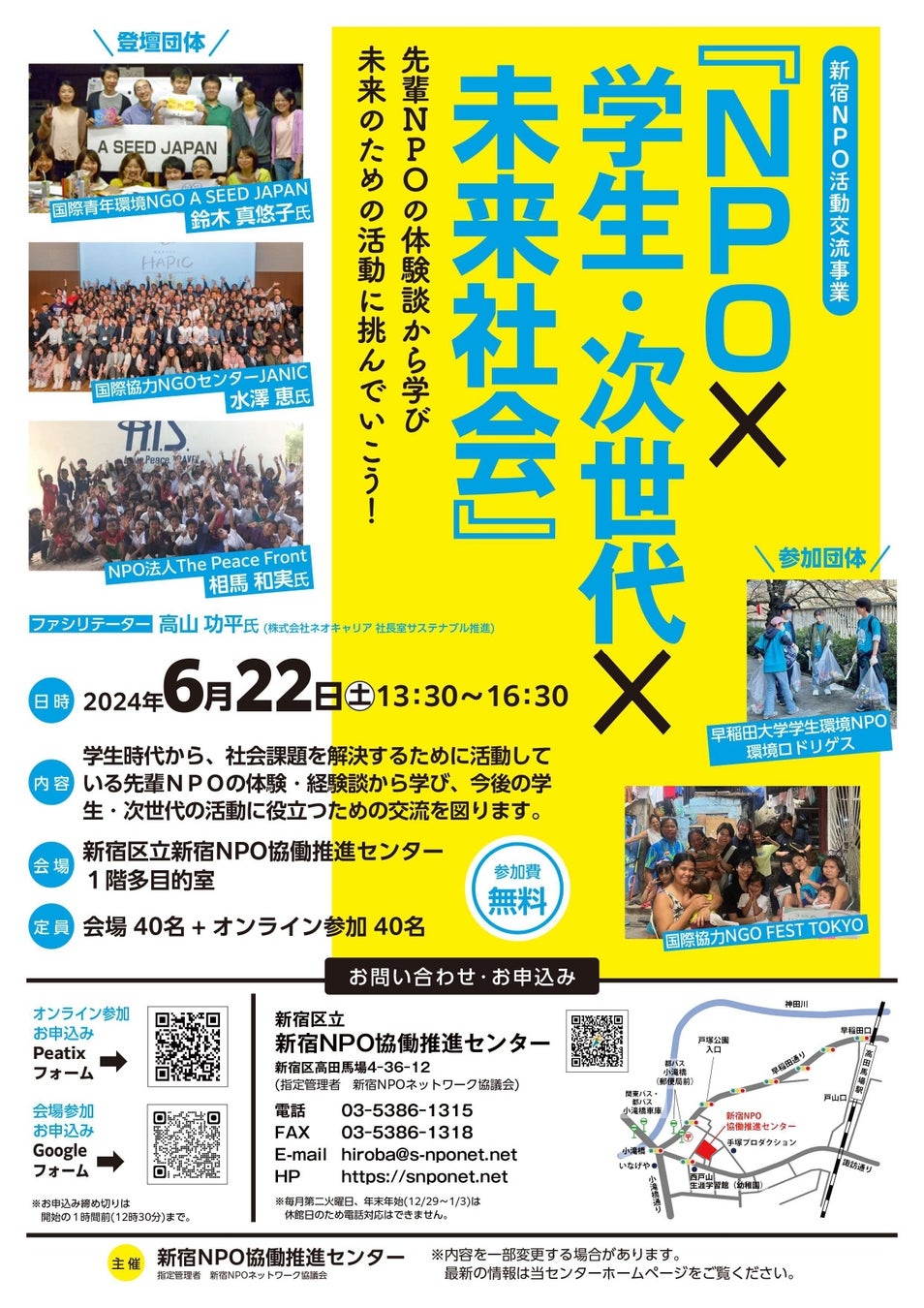 『NPO×学生・次世代×未来社会』~先輩NPOの体験談から学び、未来のための活動に挑んでいこう!~