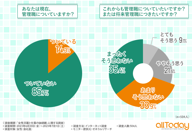 【オールトゥデイ|調査レポート】約7割の会社員女性は、管理職につきたいと考えていない!?その理由は?