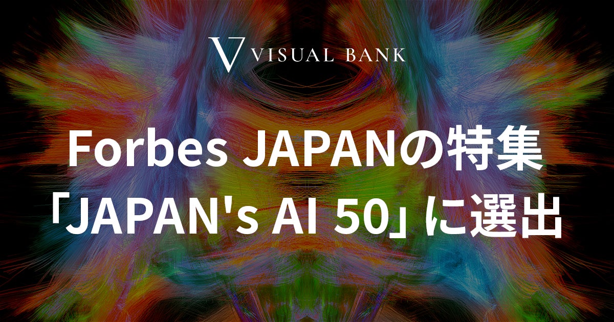 Visual Bank株式会社(本社:東京都渋谷区、代表取締役CEO:永井 真之、以下「Visual Bank」)は、グローバルビジネス誌Forbes JAPANの特集「JAPAN’s AI 50」に有力な国内AIスタートアップとして選出・掲載されたことをお知らせします。