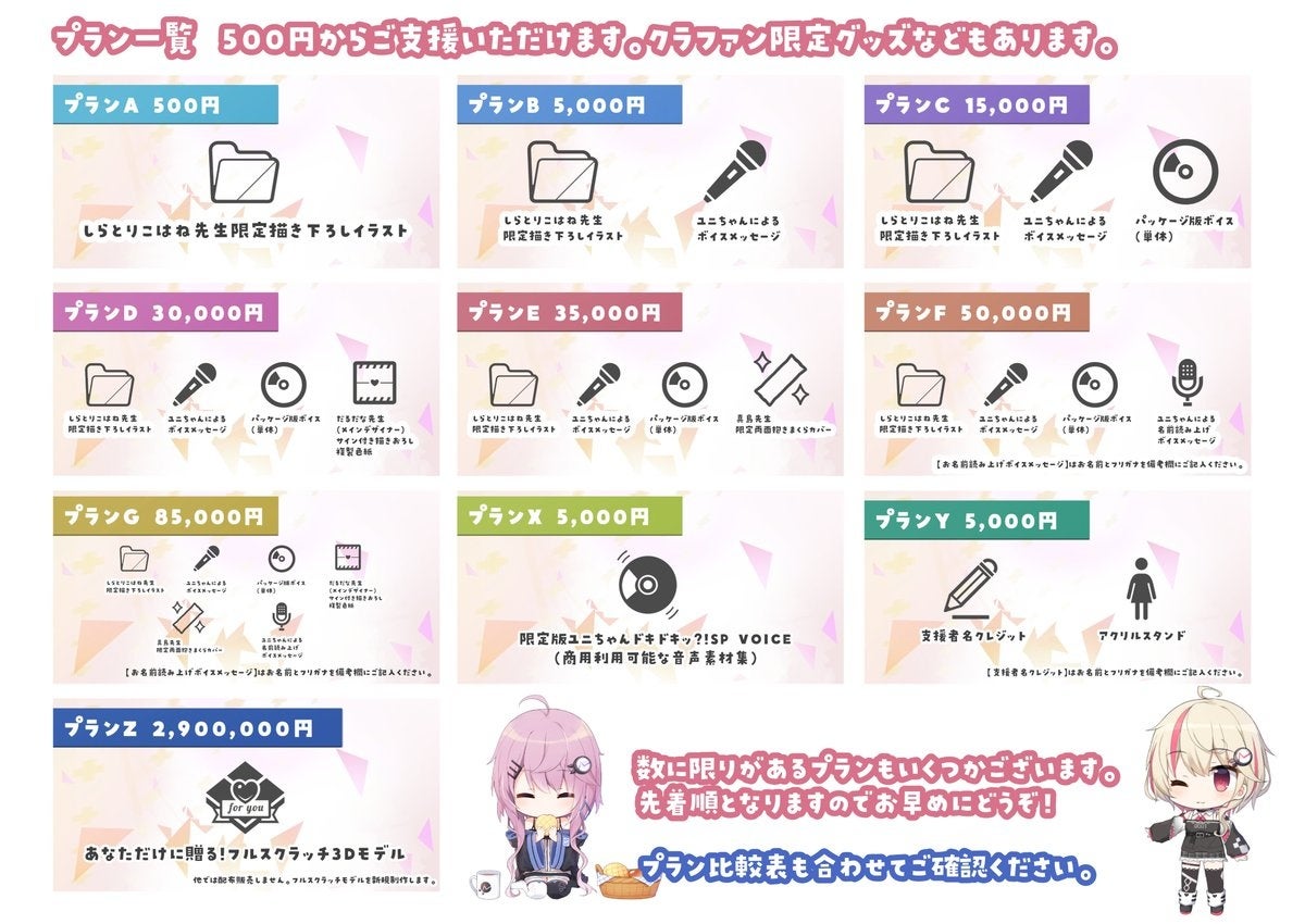 詳細はクラウドファンディングのページに記載しておりますので、ご確認ください。