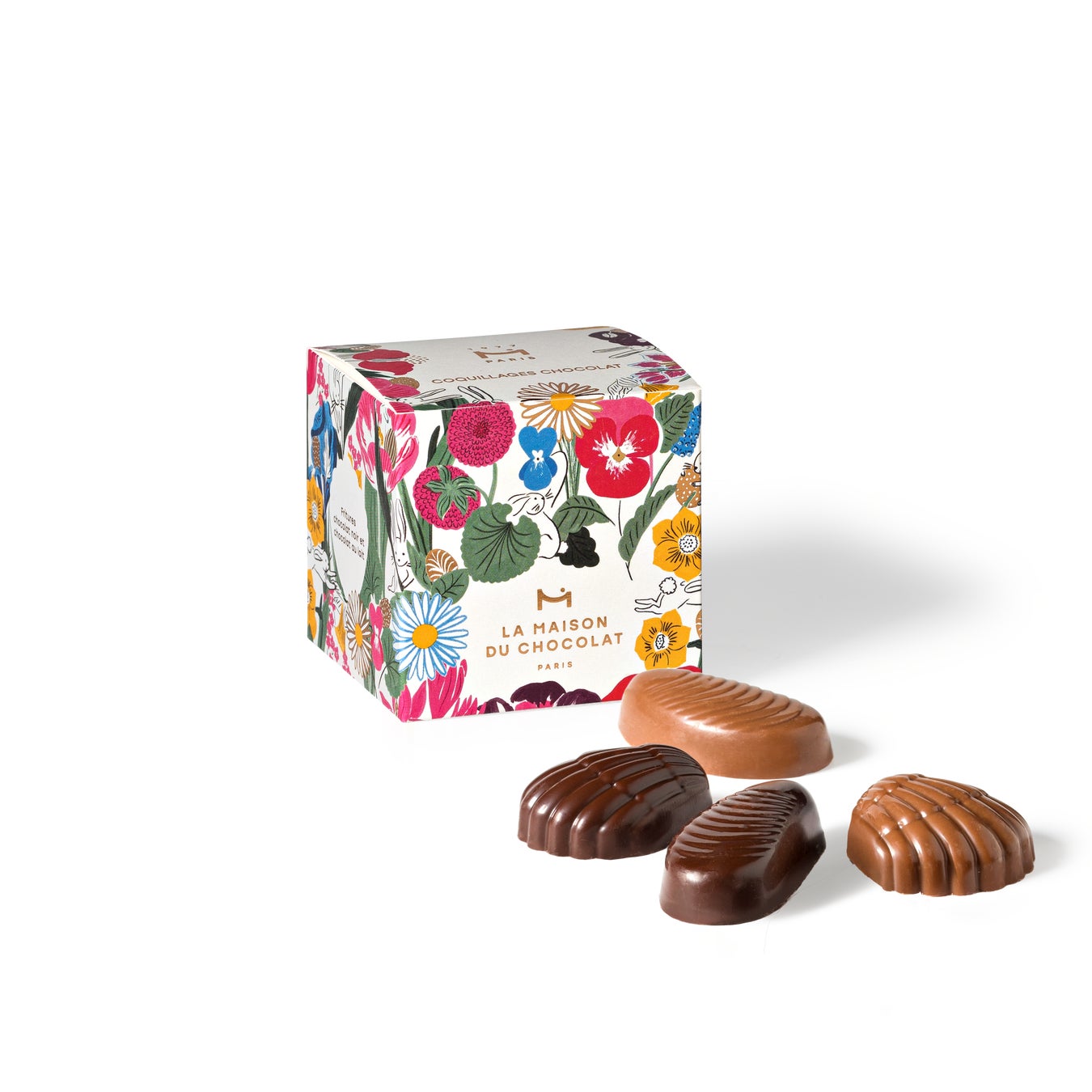 今年のイースターコレクションにおける「ムーラージュ」は、まったく新しい形状の型が新鮮で革新的なタッチを加え、デザインやラインナップが一新されました。現代性と伝統を兼ね備えたこれらのムーラージュは、現代的なラインを取り入れた多面的な外観で、その表面のザラザラとした質感がメゾンのアイコニックなボックスを思い起こさせます。