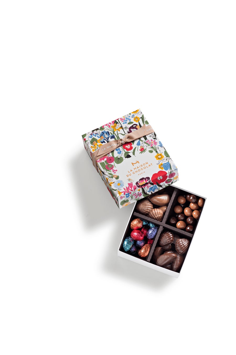 内 容:フリチュールやカラフルなアルミ紙で包まれたウフプラリネなどのイースターチョコレートと、ヘーゼルナッツをチョコレートでコーティングしたアヴェリナスを詰合せた、お一人でも大勢でシェアしても楽しめる、コレクションデザインが描かれたギフトボックス。厳選した上質なナッツとチョコレートがシンプルながらもリッチな味わい。