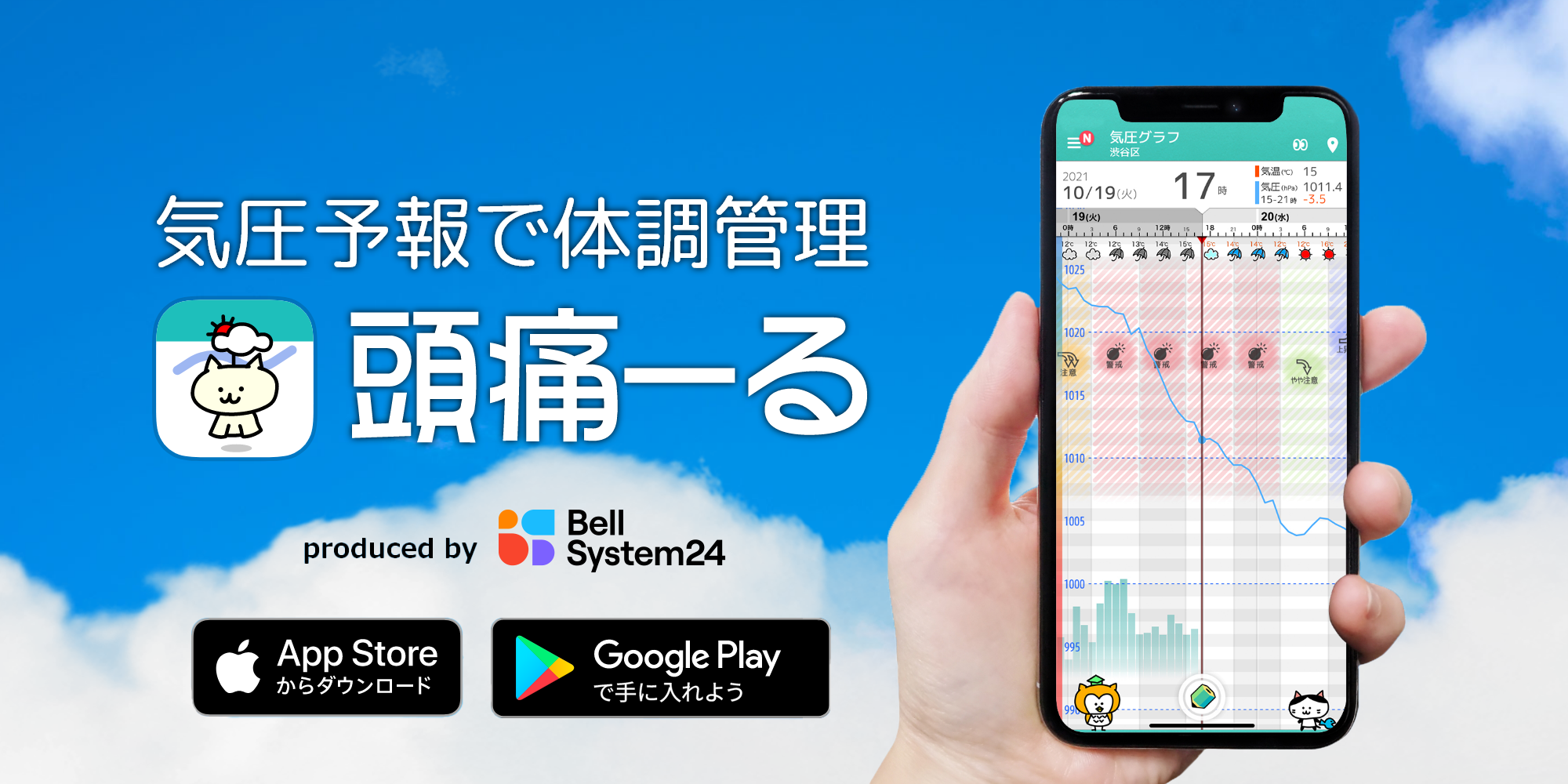 ベルシステム24提供の気圧予報に基づく体調管理アプリ「頭痛ーる」のデータを活用