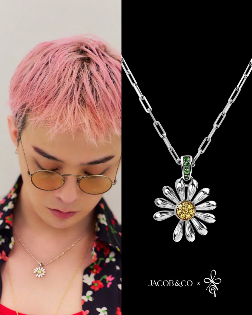 そして2025年には、世界的アーティスト・G-DRAGONとのコラボレーションを発表。第一弾としてリリースされたのは、彼の象徴である「デイジー」をモチーフにした「Jacob & Co. x PEACEMINUSONE ペンダント」。彼自身がデザイン監修にも深く関わり、ジュエリーとしての芸術性とメッセージ性を融合させたアイテムに仕上がっています。そして現在、コラボレーション第2弾として、G-DRAGONの世界観を反映したスペシャルタイムピースの発表も予定されており、今後のコレクション展開にも注目が集まっています。