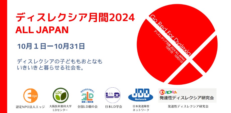 ディスレクシアは学習障害のひとつで、文字の読み書きがすらすらと正確にできない症状をさします。東京都港区の認定NPO法人エッジ(会長藤堂栄子)は、10月にディスレクシア月間2024を開催します。