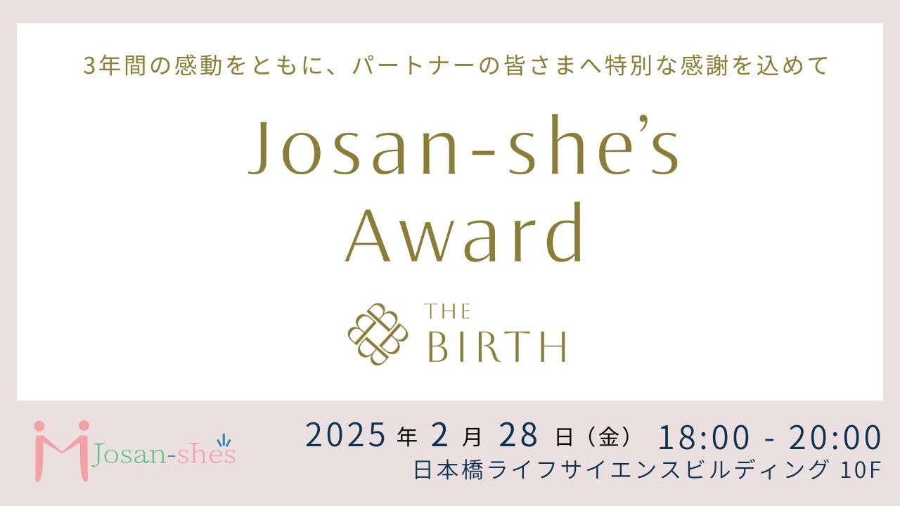 女性専門職の多様なキャリアを支援するジョサンシーズ、感謝と成長を共有するアワード「Josan-she's Award - The Birth - 」の開催が2月28日(金)に決定