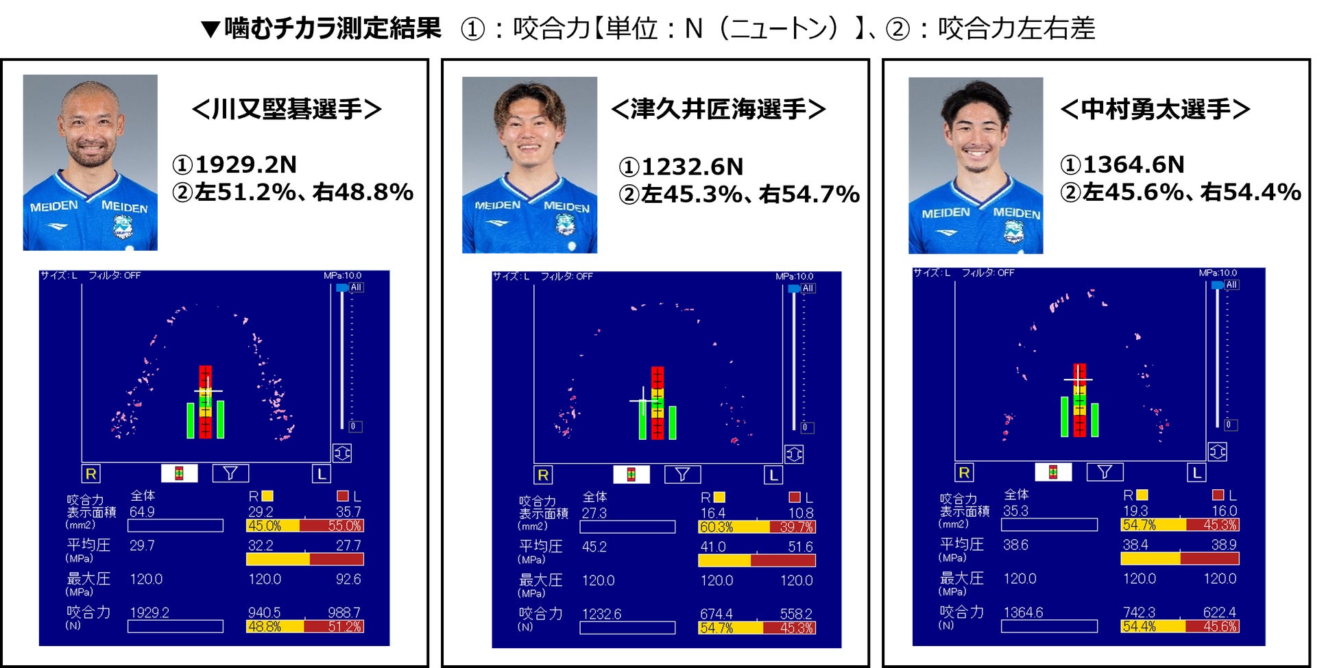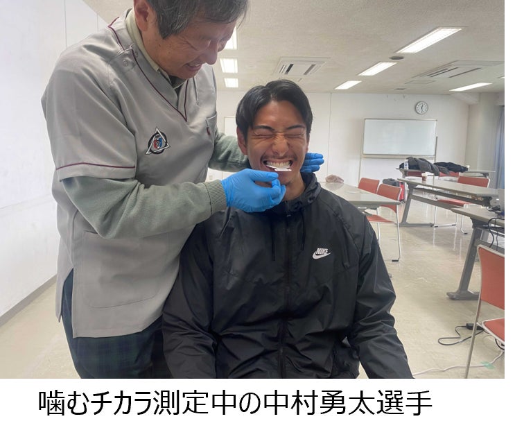 選手の咬合力、左右バランスを見える化!左右バランスの良い選手が続出!