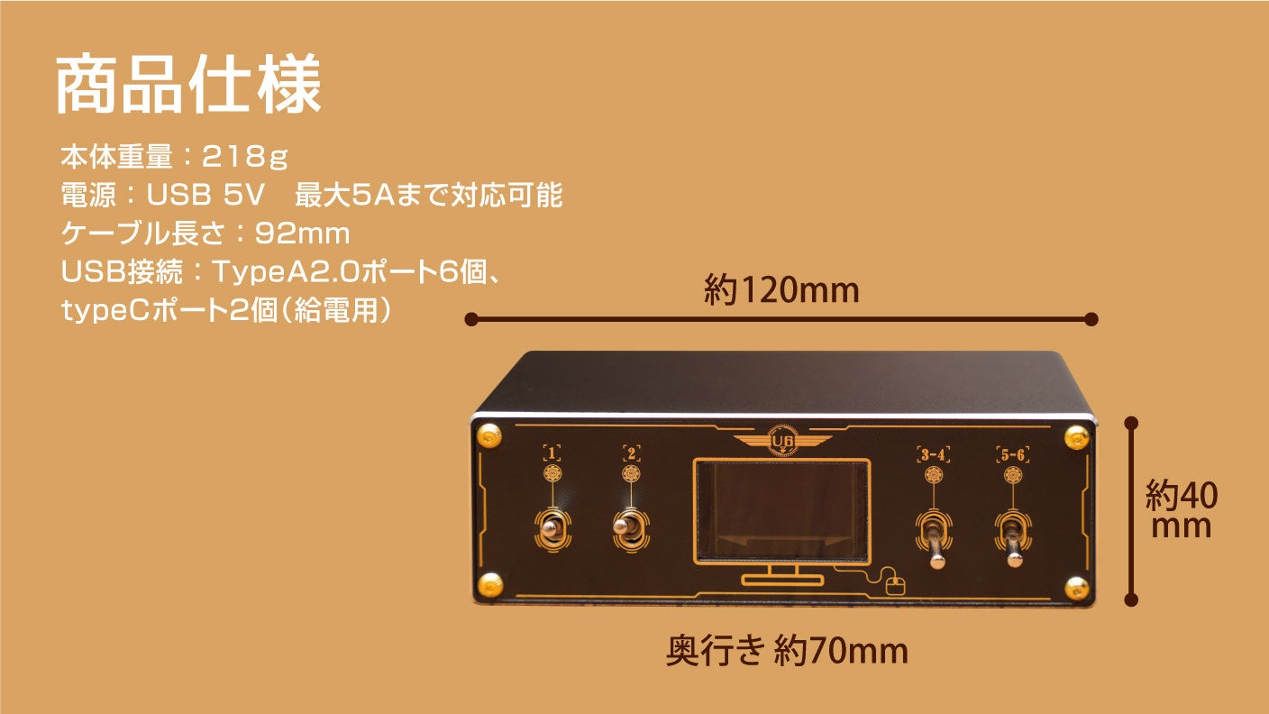 ■4個のトグルスイッチでON/OFF切り替え■PC接続および電源供給用TypeCポート2個搭載