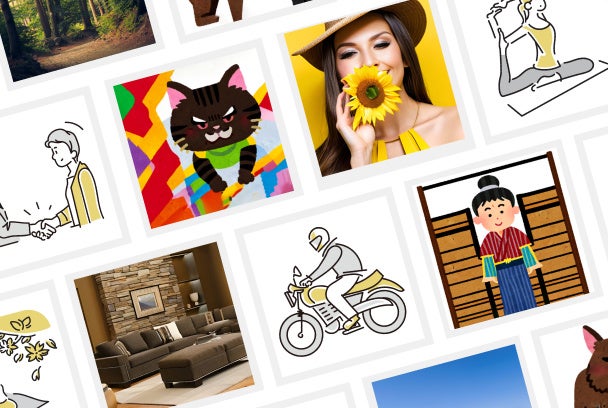 イラストから実写まで素材の検索が可能:「AIいらすとや」や「Loose AI」などのイラスト素材に加えて、実写の素材も利用できます。
