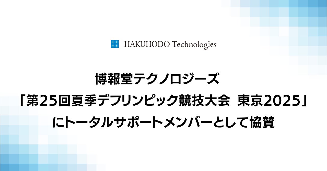 株式会社博報堂テクノロジーズ(東京都港区、代表者:米谷修)は、2025年11月15日から26日に開催される「第25回夏季デフリンピック競技大会 東京2025」にトータルサポートメンバーとして協賛することをお知らせいたします。