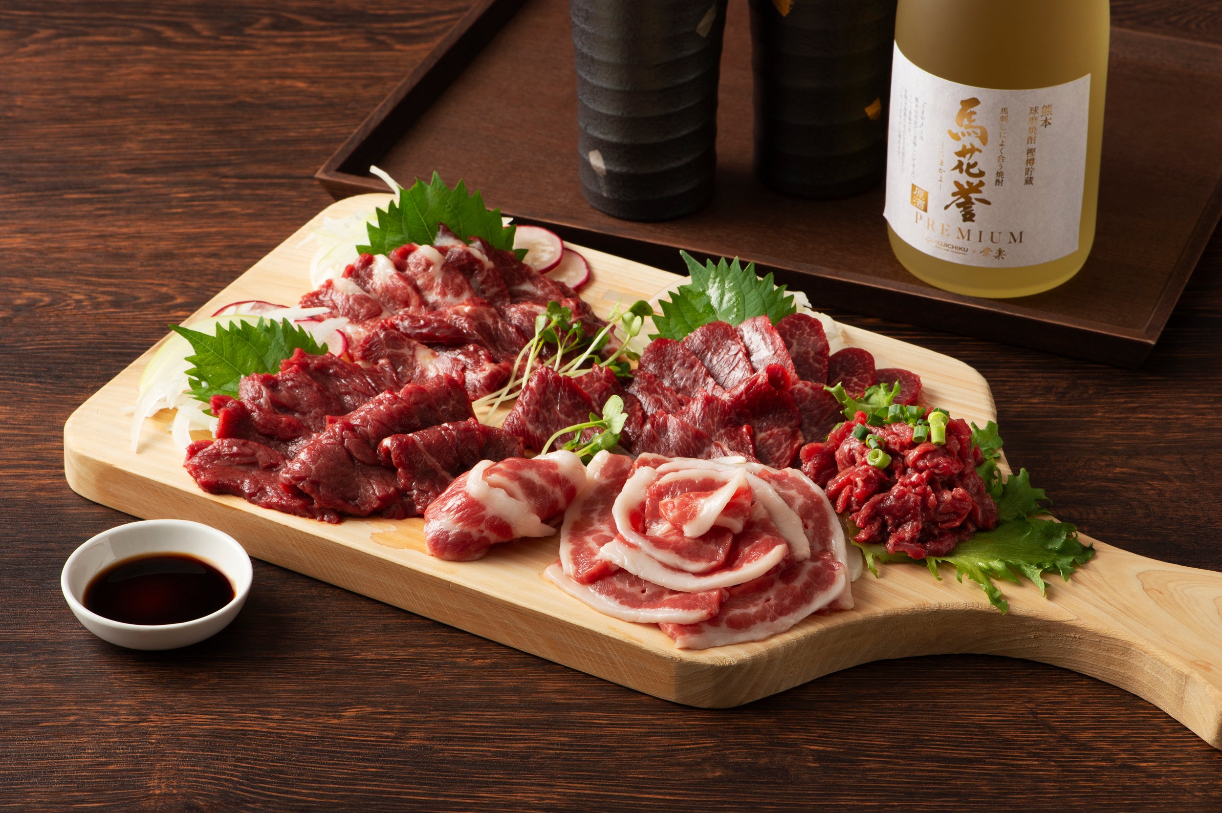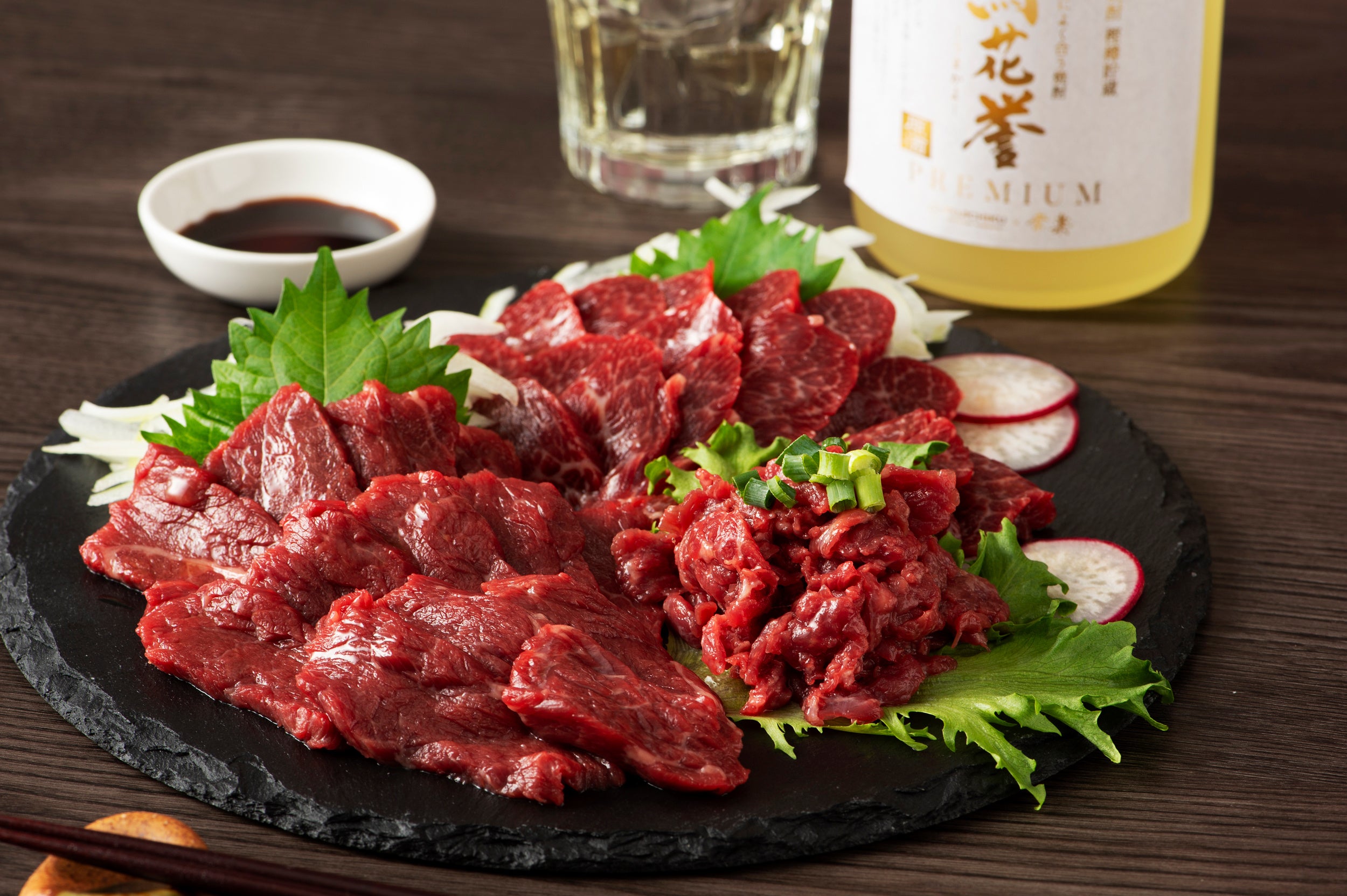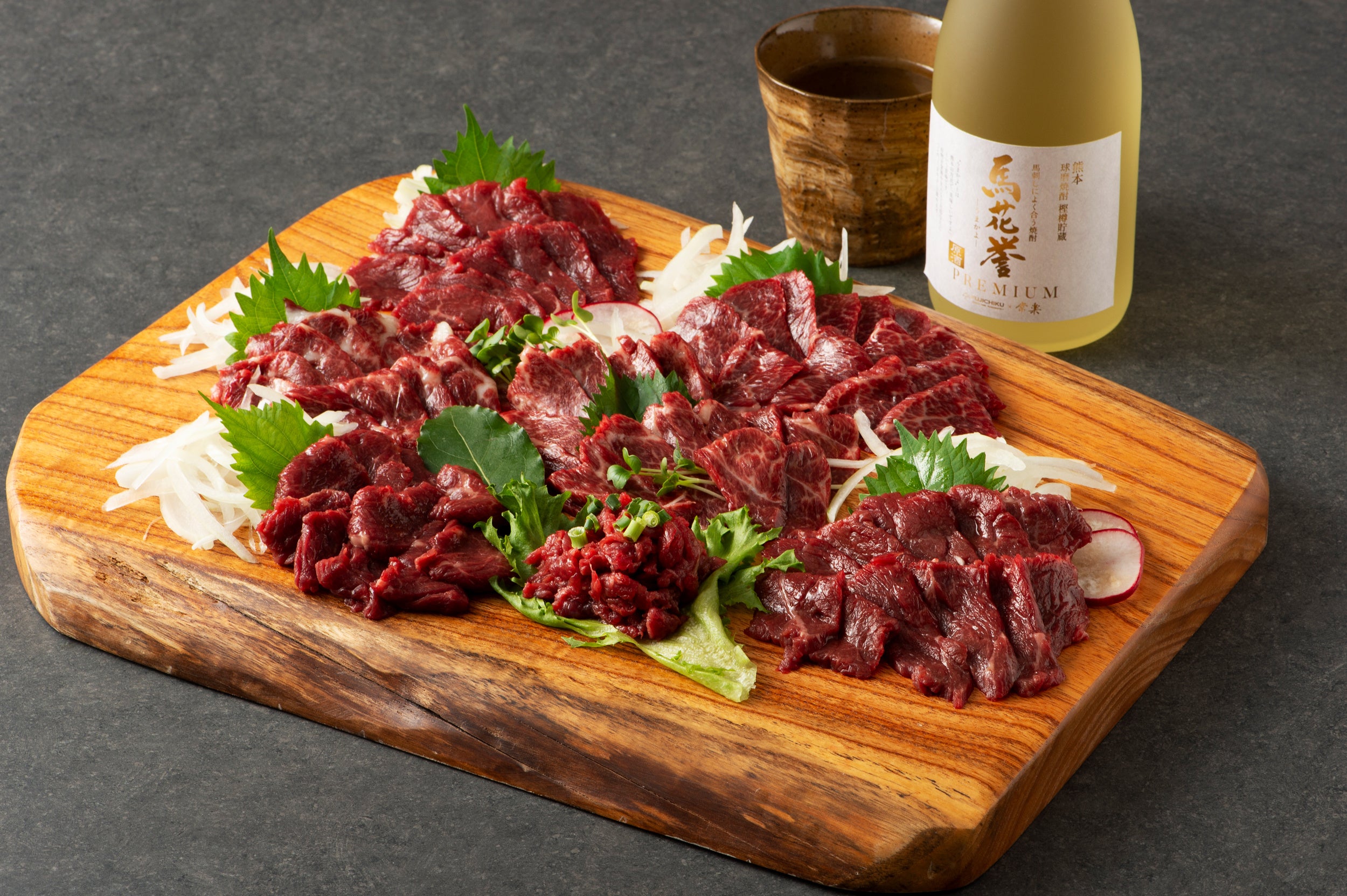 【プレミアムな本格球磨焼酎を新発売】馬刺しに合う焼酎「馬花誉」のプレミアムを200本の数量限定でmakuakeにて販売。ワンランク上の味わいを、新鮮な馬刺しと味わってください!