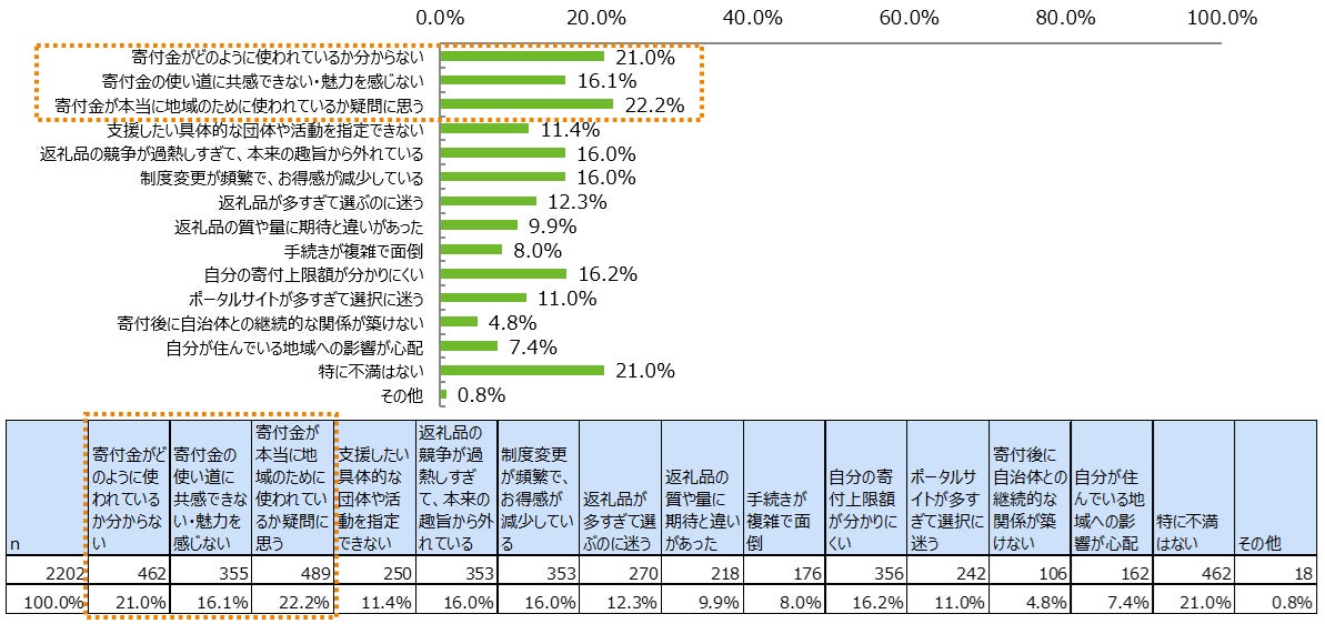 質問:これまでのふるさと納税の利用において、不満に感じたことや改善してほしいことはありますか?