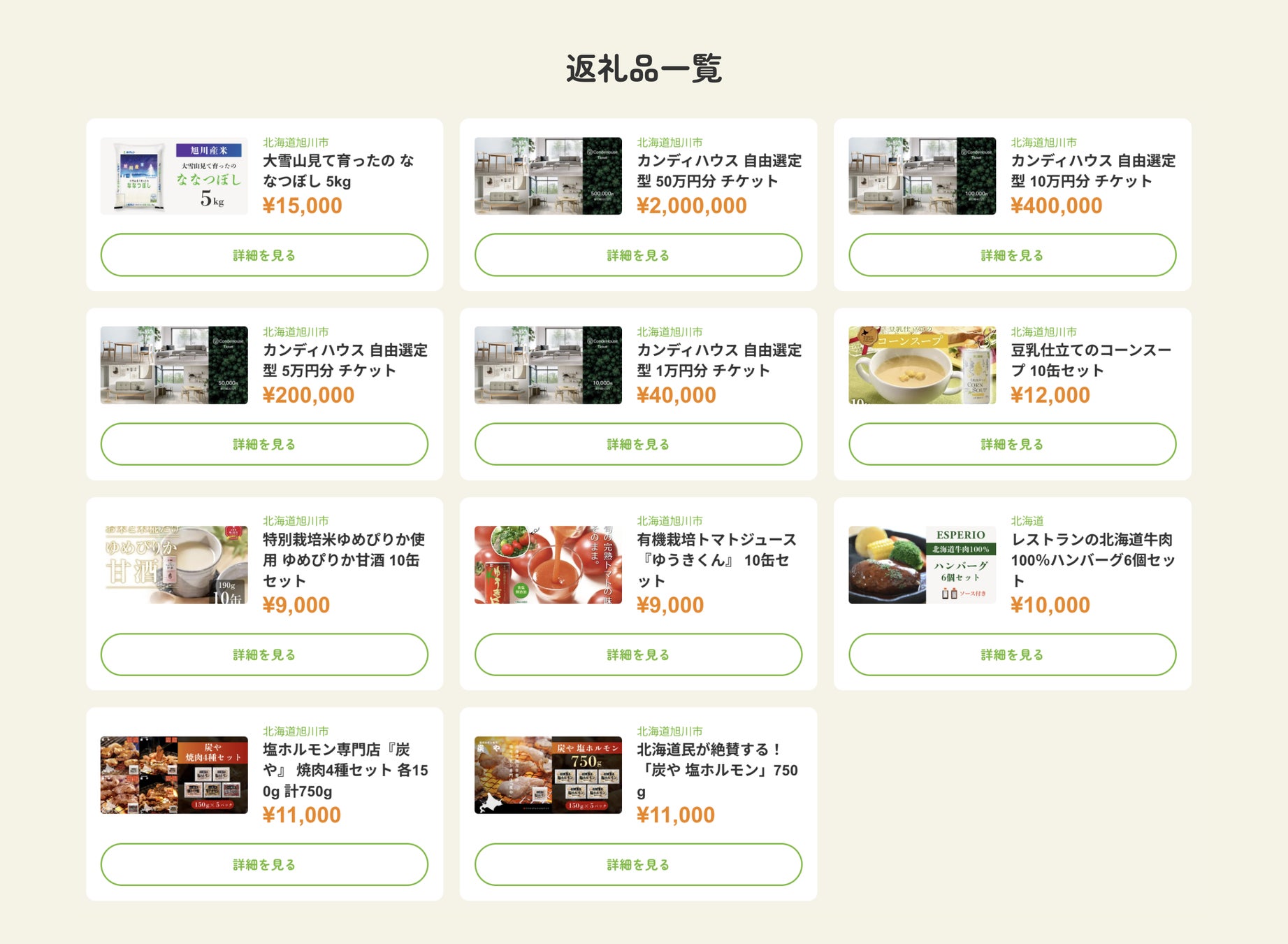 旭川市のプロジェクトでは、以下のような返礼品を用意しています。