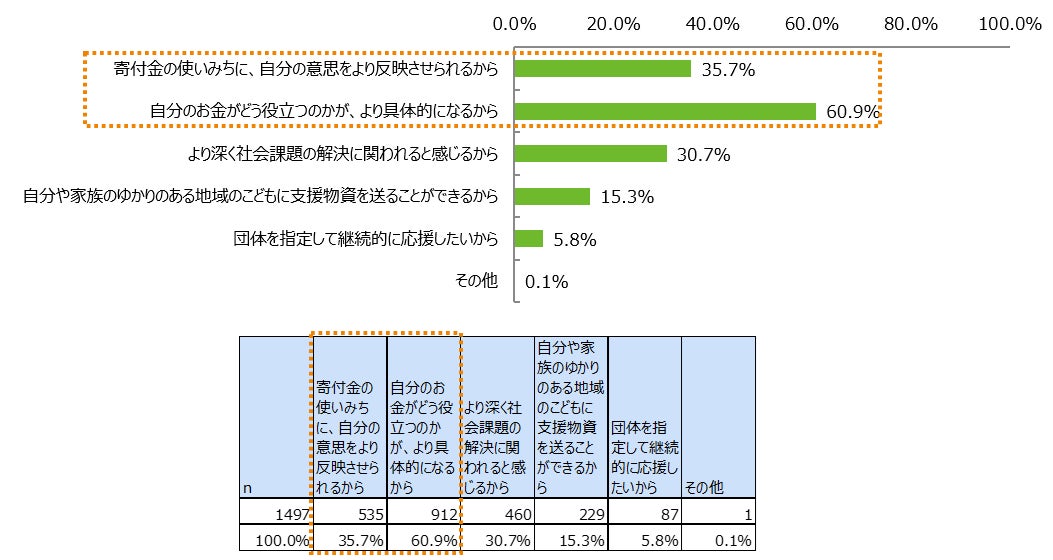 質問:支援物資を送る地域や団体まで選べることのどのような点に魅力を感じますか?