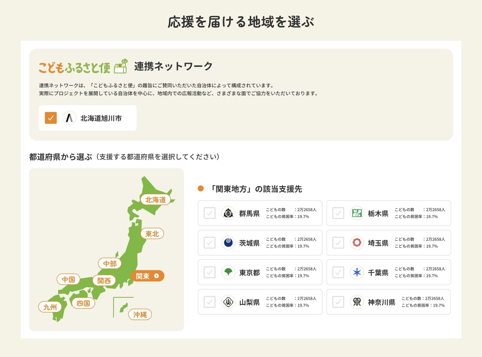 専用ポータルサイトからの寄付では、寄付先の地域だけでなく、「応援品を届けるこどもたち」も選ぶことができ、ふるさと納税の使いみちに、より想いを込められるようになります。