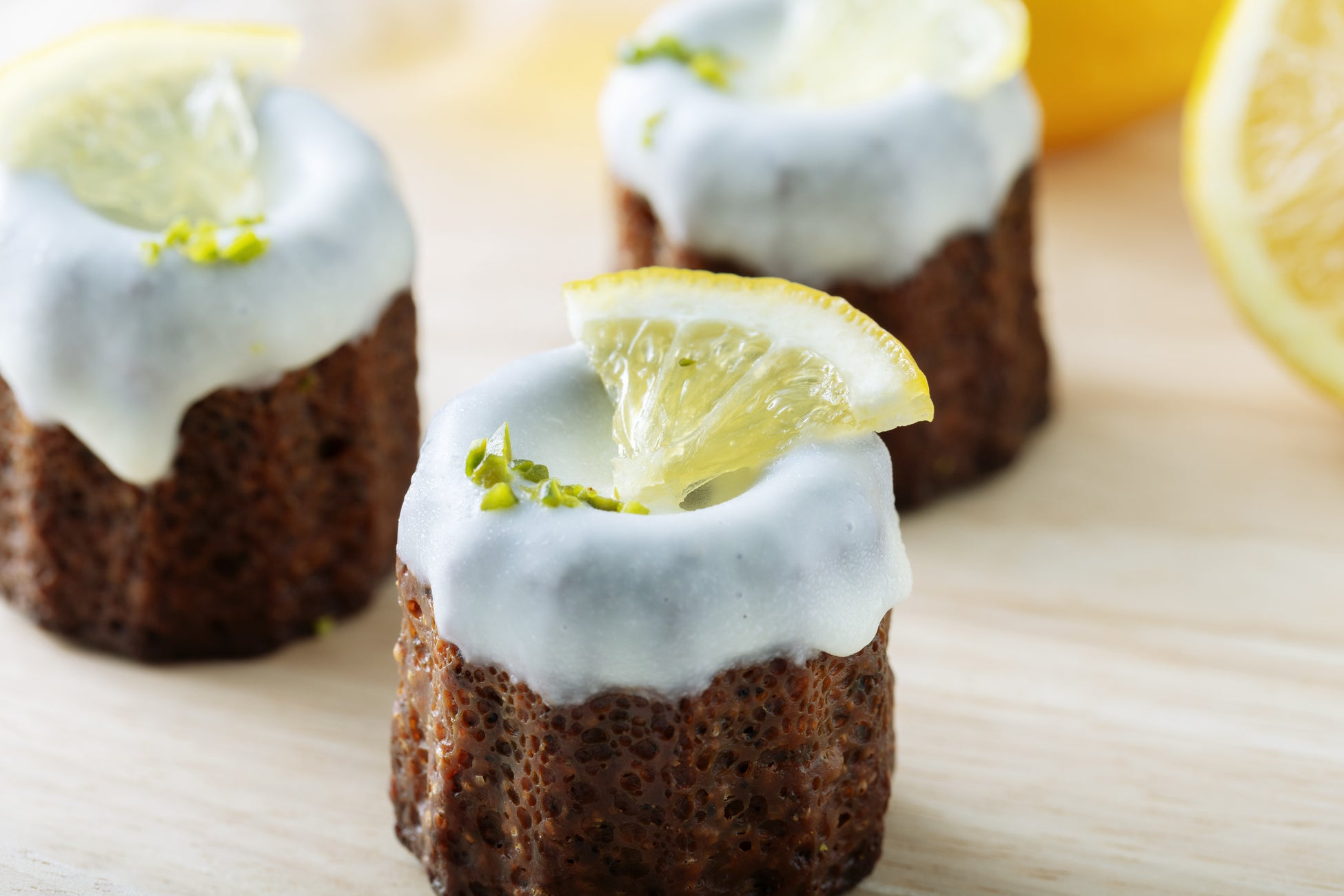 天面には、見た目が鮮やかなピスタチオに加え、シロップ漬けの皮付きレモンをトッピング。しっかりとしたレモンの果肉感があり、夏らしいカヌレです。