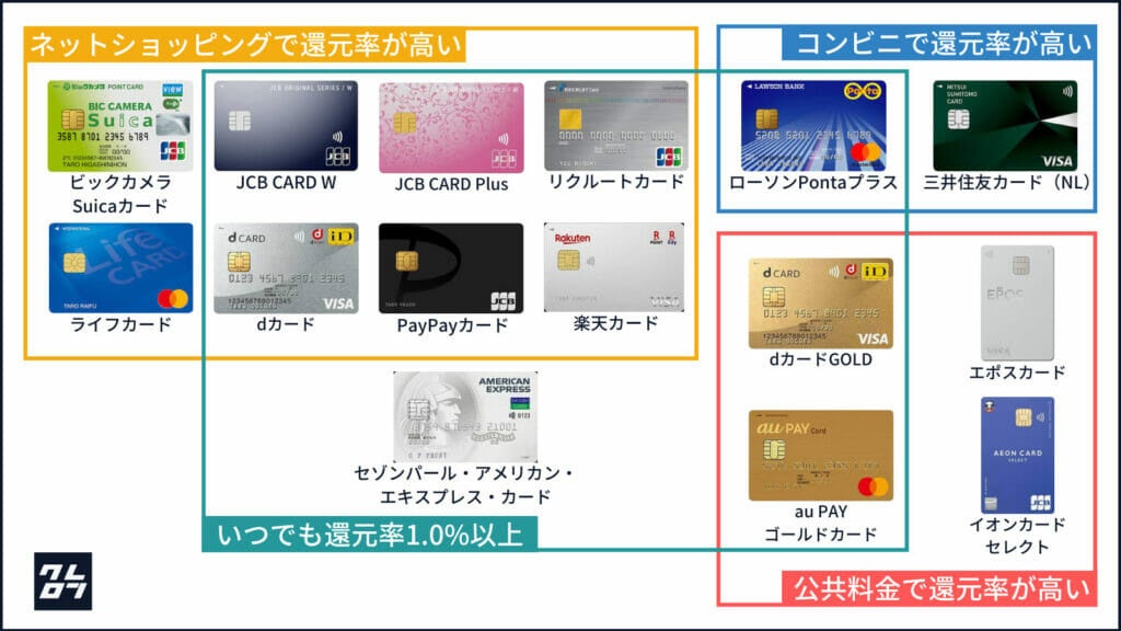 上記の中から自身の目的に合った還元率が高いカードを選ぶのが良いと思います。