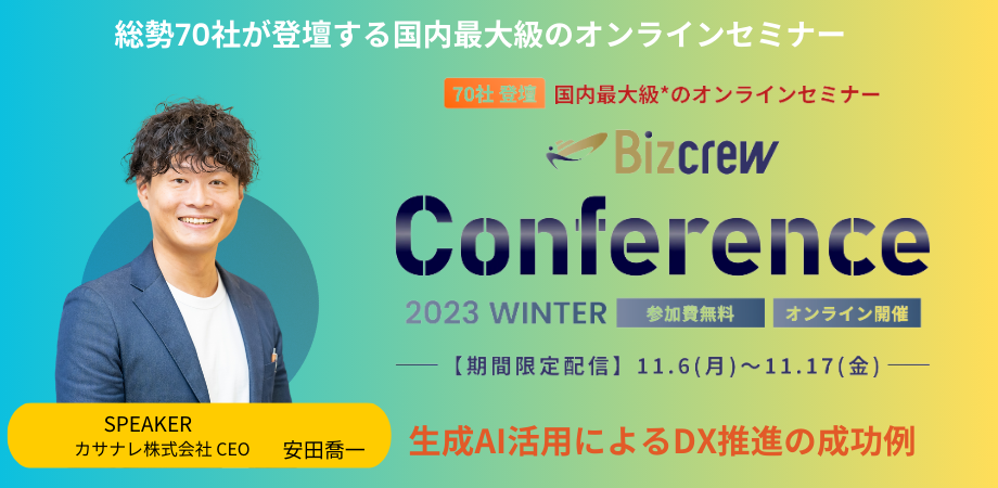 国内最大級のオンラインセミナー「Bizcrew Conference 2023 WINTER」にカサナレ株式会社が登壇します!