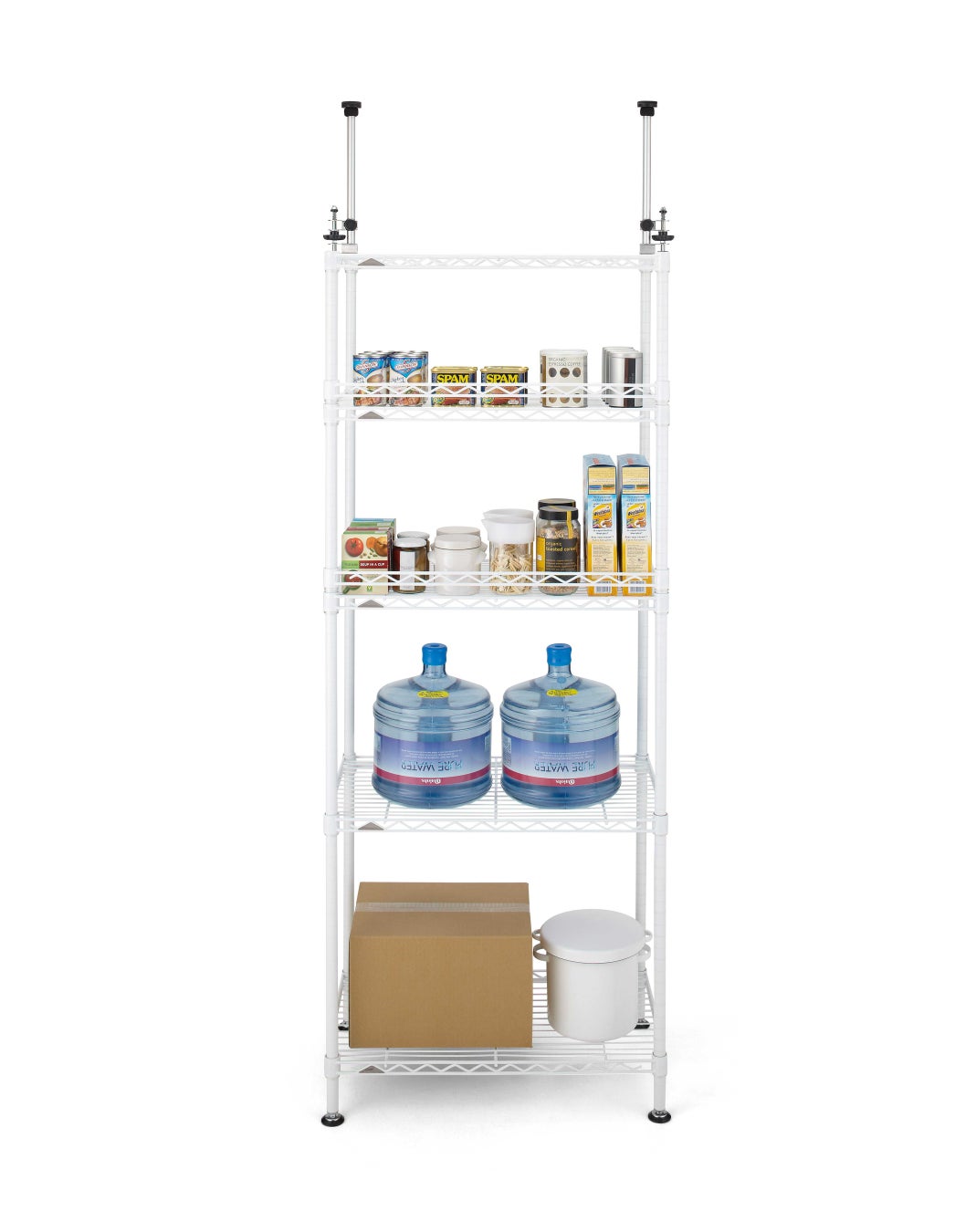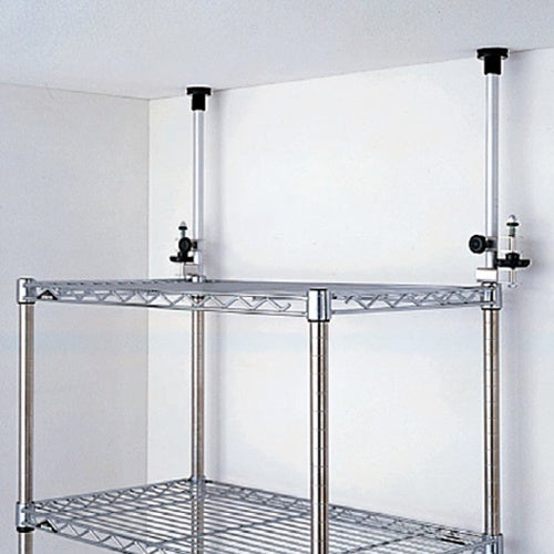シェルフのポール上部に取り付け、天井の面にテンションを与えることにより、シェルフの転倒を防止。ダブルアクション方式でゆるみにくく、しっかり固定します。