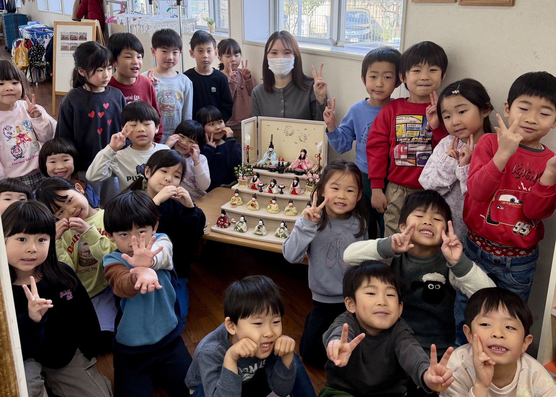 ふらここ、保育関連施設3件に雛人形を寄贈-2月12日、「まなびの森ぶんじっこ保育園」で園児と一緒に飾り付け体験を実施-