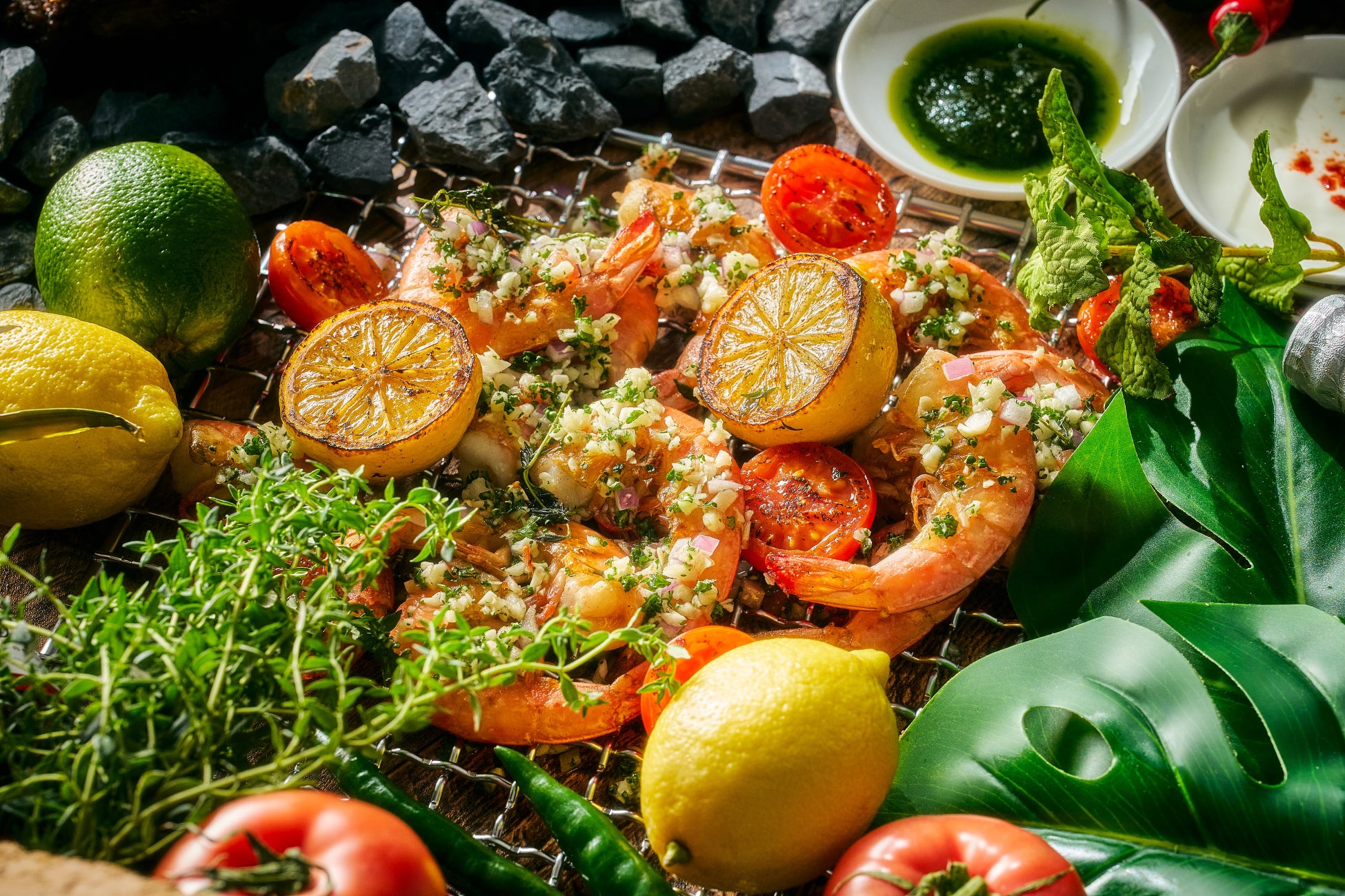 ハワイ発祥の定番料理で、ニンニクとハーブでマリネした海老を鉄板で炒めました。海老のプリプリとした食感に、ガーリックとバターの香りが食欲をそそります。