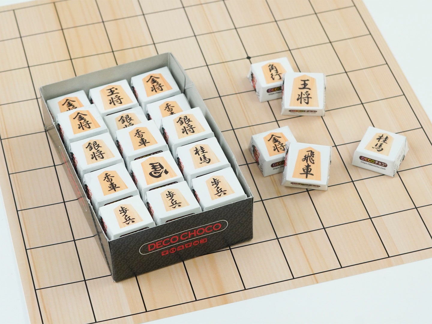 「DECOチョコ将棋」は、将棋駒デザインのチョコを各柄1粒からご購⼊いただける商品として昨年発売、詰んだら食べて解決!?取ったら食べる新ルール!?と話題になりました。