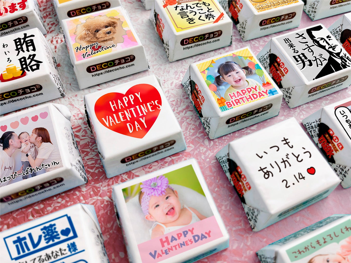「DECOチョコ」は、世界に1つだけのオリジナルチョコが作れるサービスです。Webサイト上で、お客様ご⾃⾝で写真や⽂字等を⼊れていただき、オリジナルチョコを作成、短納期でお届けします。