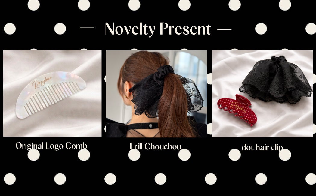「フリルシュシュandドットヘアクリップandロゴ入りコーム」&【板野友美との2SHOT&動画撮影特典会】