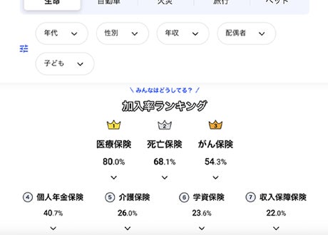 年代や性別、家族構成や年収が近い人がどんな保険に加入しているかを参考にできます。同じ境遇の人はどんな保障/補償に入っているのだろう?といった疑問を解消できます。