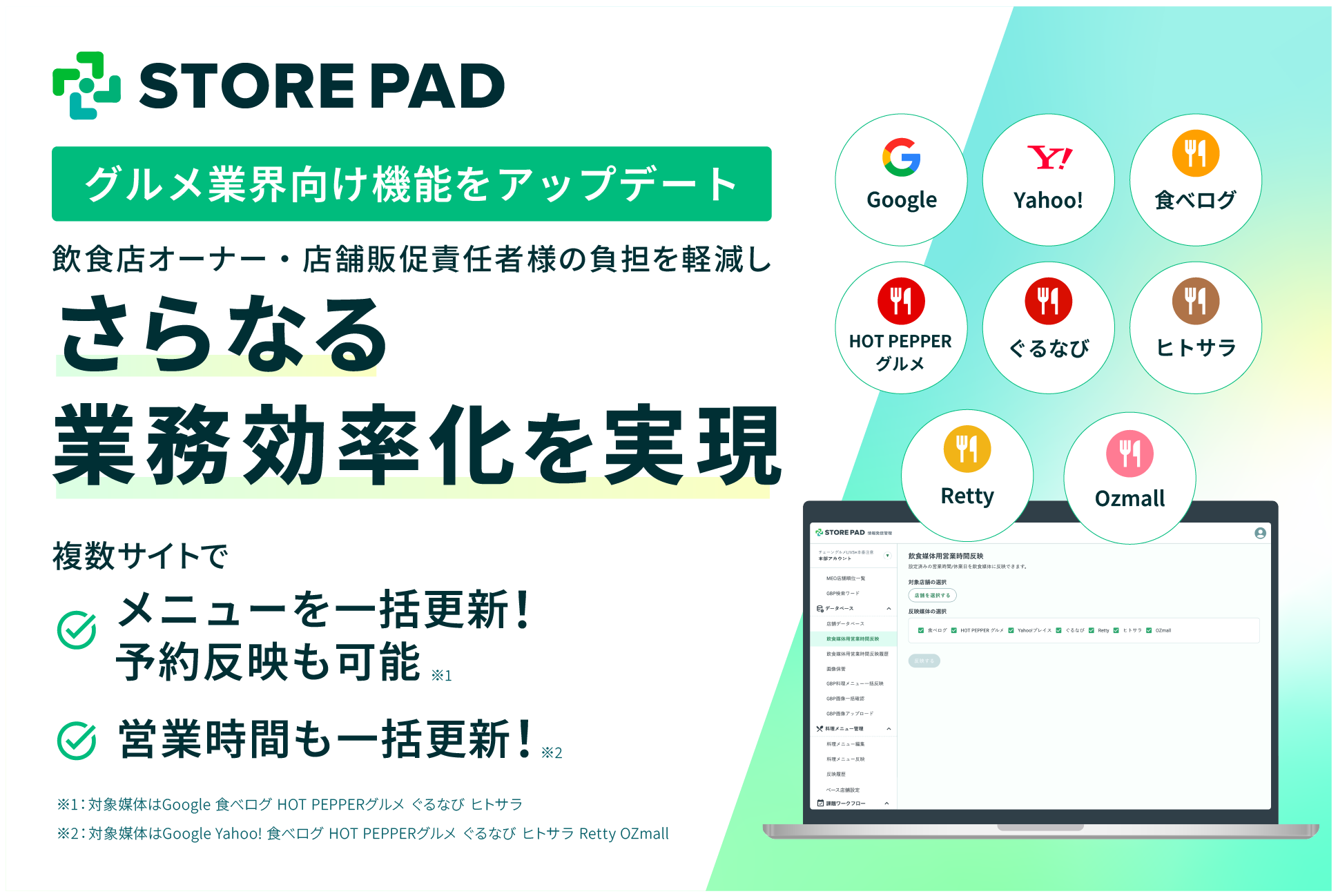イクシアスが提供する店舗集客媒体対応最適化AISaaS「STOREPAD(ストアパッド)」が、グルメ業界向け機能をアップデート