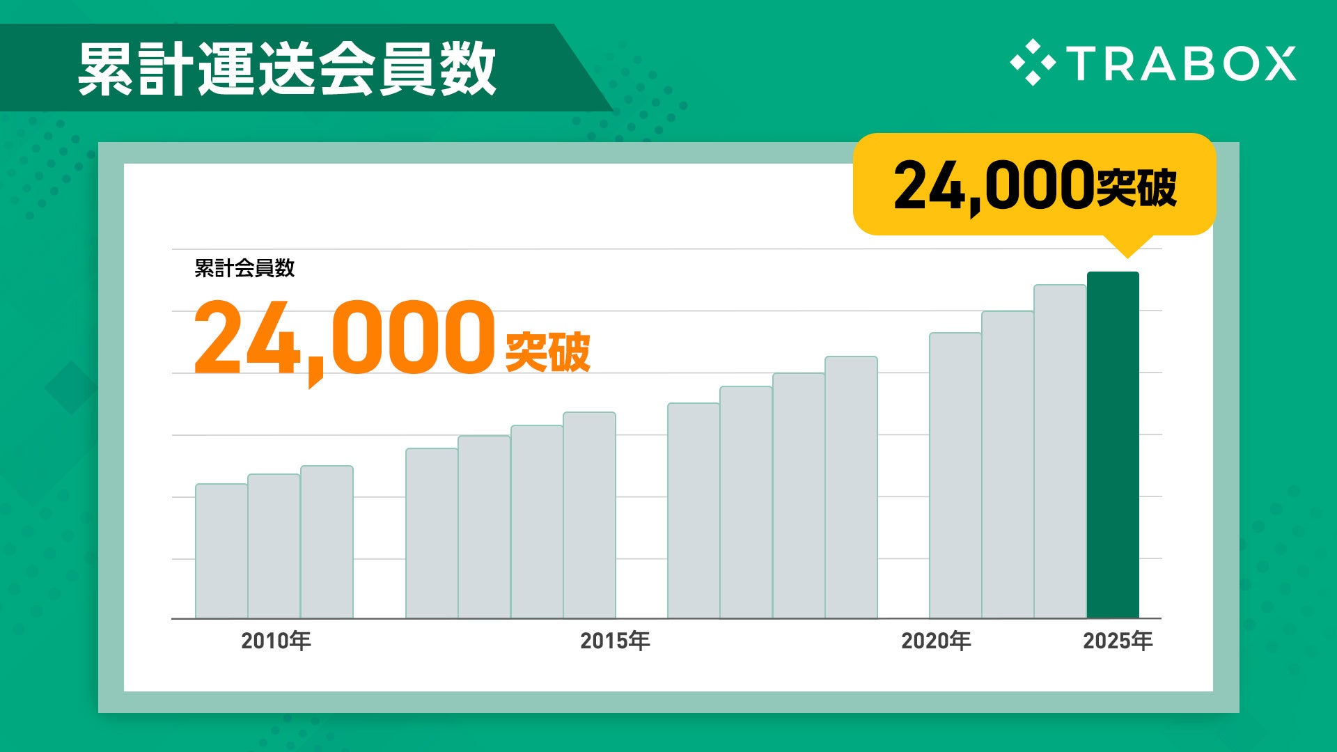 2000年の創業以来、累計24,000以上の会員様とともに歩んできたトラボックスが、次の四半世紀に向けてどのような価値を提供するかを可視化しました。