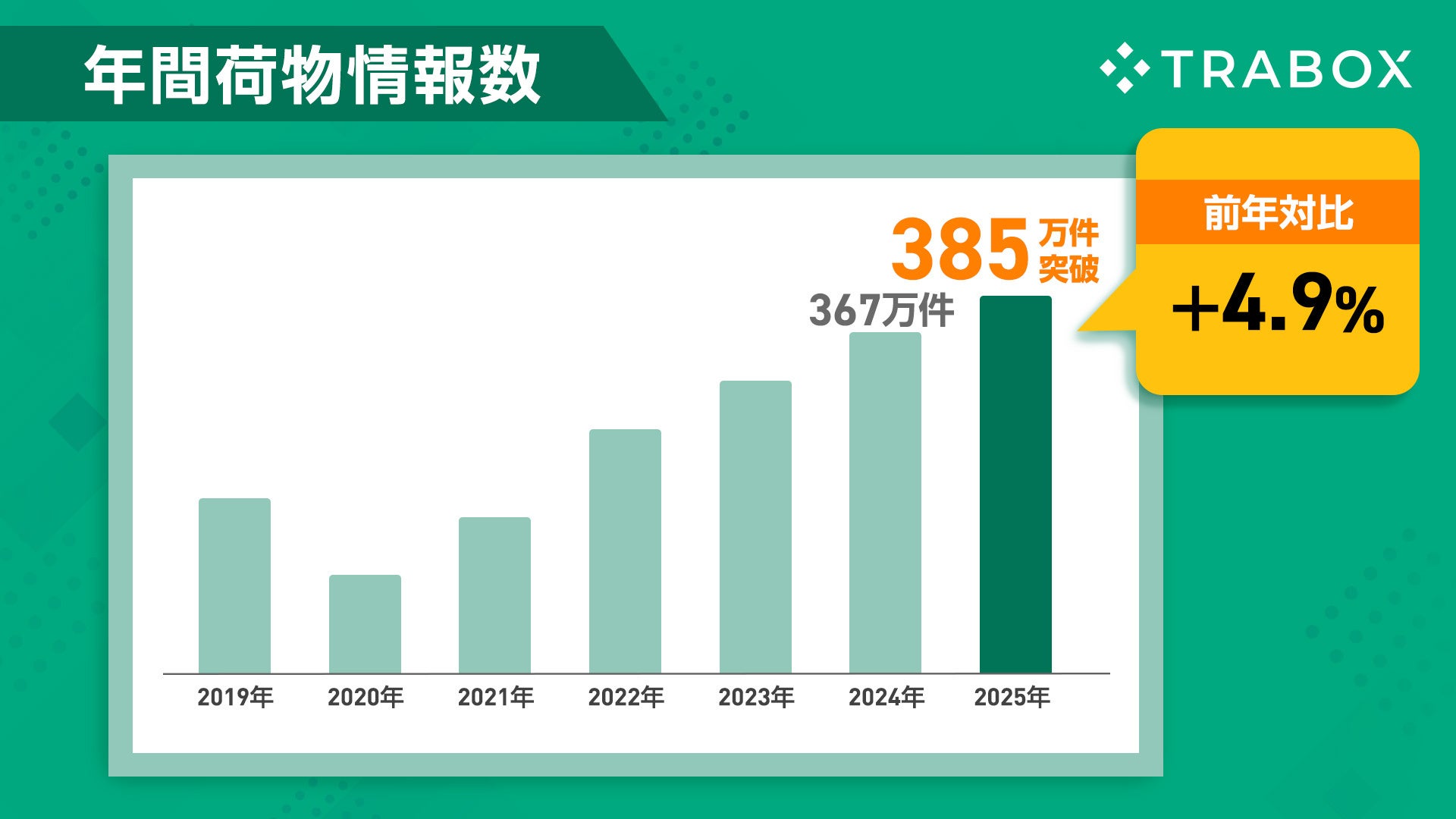 荷物の運送を希望する運送会社や荷主と、空きトラックを保有する運送会社をオンラインでマッチングさせるサービスを25年運営し、累計運送会員数は24,000以上。2025年の荷物情報登録件数は385万件以上で国内最大級の取扱量となる。2020年3月にVisionalグループに参画し、ITの力で物流業界全体の生産性向上に寄与することを目指す。