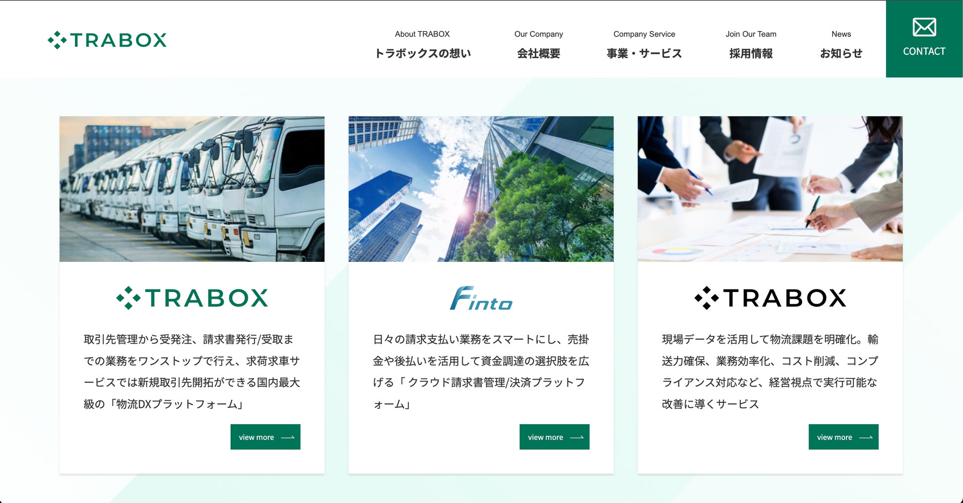 物流DXプラットフォーム「トラボックス」を運営するトラボックス株式会社(本社:東京都渋谷区、代表取締役社長:皆川 拓也)は、創業25周年を機に、コーポレートサイトを全面リニューアルいたしました。 今回のリニューアルでは、国内最大級の物流マッチングサービスに加え、新たに展開するクラウド請求書管理・決済プラットフォーム「Finto(フィント)」を含めた、物流業界の経営課題をトータルに解決するためのサービスを拡充いたしました。