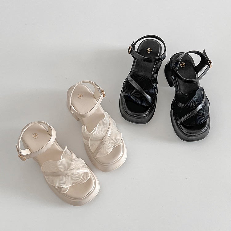 商品名:軽量厚底 チュール フリル ヒールソール サンダル 5985