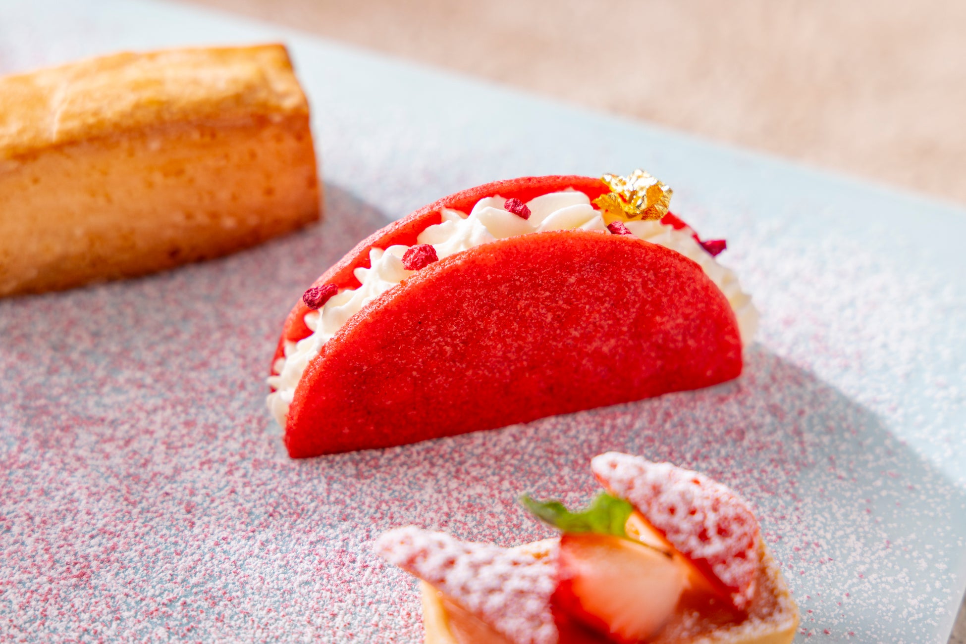 タコスに見立てたいちごのクッキー生地でぎゅっと抱きしめたそんなムチョグストなスイーツ。