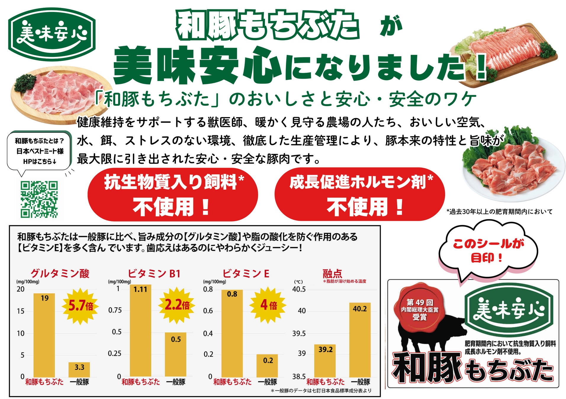 健康維持をサポートする獣医師、暖かく見守る農場の人たち、おいしい空気、水、餌、ストレスのない環境、徹底した生産管理により、豚本来の特製と旨味が最大限に引き出された安心・安全な豚肉です。