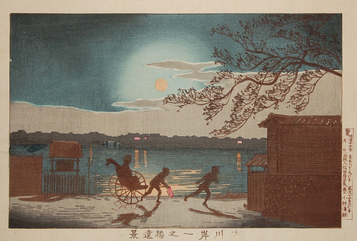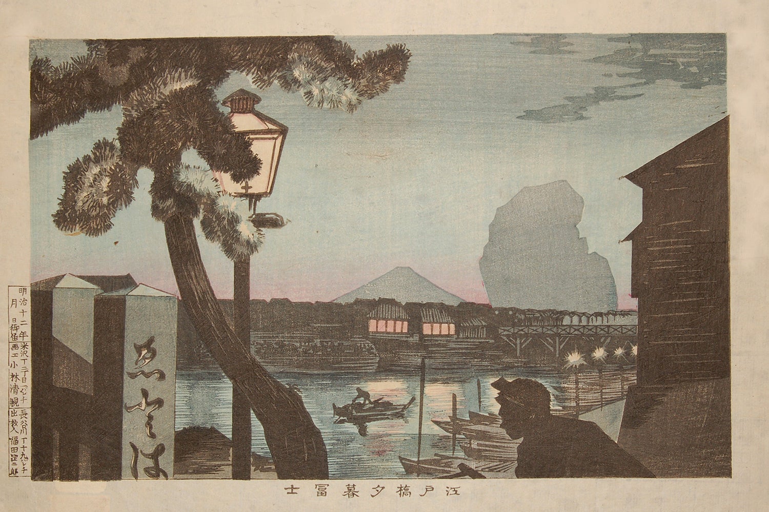 幕臣として戊辰戦争に参加した小林清親は、明治初期に絵師としての活動を始め、江戸時代までの風景画とは異なる新しい表現を生み出しました。時間や季節によって変化する光と影を巧みに捉えた彼の作品は、「光線画」と呼ばれて人気を集めます。作品には、いつの時代も変わらない月明かりや夕焼けとともに、明治になって普及した人力車やガス灯、新しく架けられた橋などが描かれています。普遍的な光や影の中に表された、江戸から東京へと移りゆく町並みは、豊かな情趣を感じさせます。新しい時代へと向かう東京への眼差しと、変化する町並みへの郷愁が重なり合うその作品は、唯一無二の魅力を備えています。