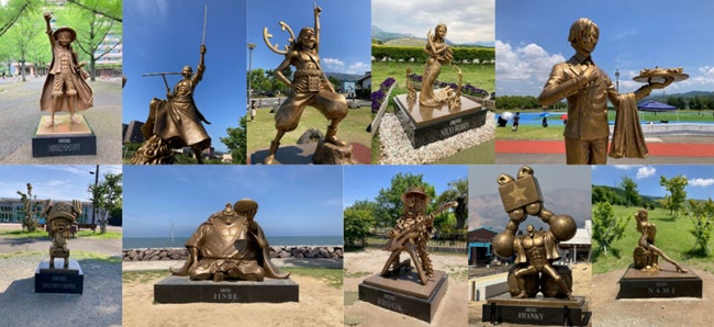 ① 県内各地に設置された10体の麦わらの一味像を巡る