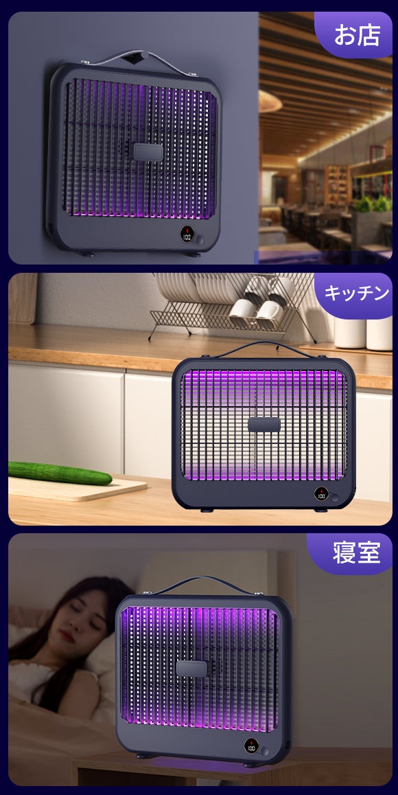 1. 360度誘引。前後両面で蚊を誘引可能なため、捕獲効果が向上されています。
