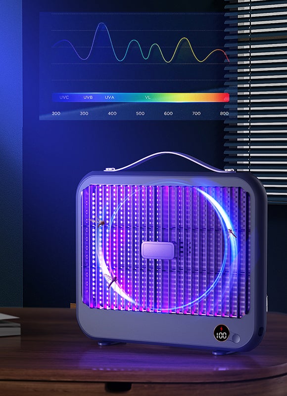 Mocarinは蚊の習性に基づいて設計されております。紫外線を放出し、生物の体温を感じさせる「温度」、生物の呼気を模倣する「二酸化炭素」を併用して蚊やその他の小さな虫を引き寄せ、2000V高電圧で瞬時に駆除します。