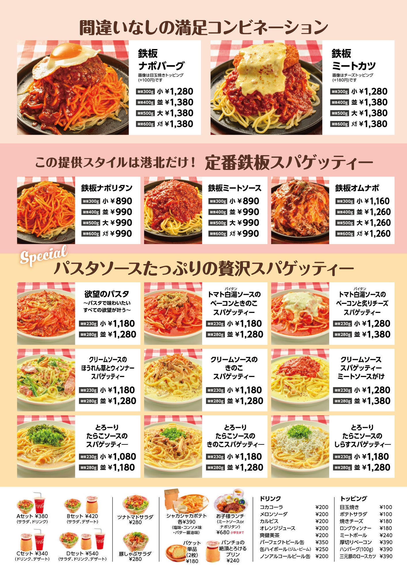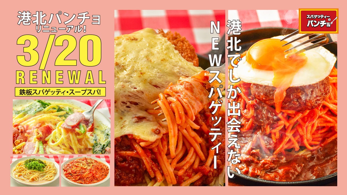 リニューアルに際し店舗オリジナルメニューに一新。キッチンで炒めたスパゲッティーを熱々のまま楽しめる「鉄板スパゲッティー」とたっぷりソースの「スープスパゲッティー」を新たに発売します。パンチョならではのトッピングメニューも揃え、セットメニューやサイドメニューも豊富でショッピングモールをもっと楽しめるフードコート店としてパワーアップ! 今後もパンチョは新しいスパゲッティー文化を提案し「改めてナポリタンはうまい」を実感いただける機会をよりいっそう提供してまいります。