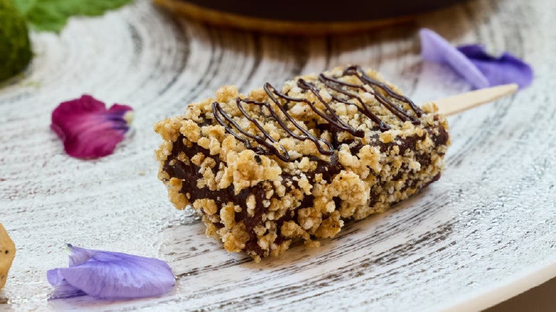 大阪の銘菓「岩おこし」が、とろける生チョコと出会い、大阪の串文化にちなんだ串型スイーツに生まれ変わりました。