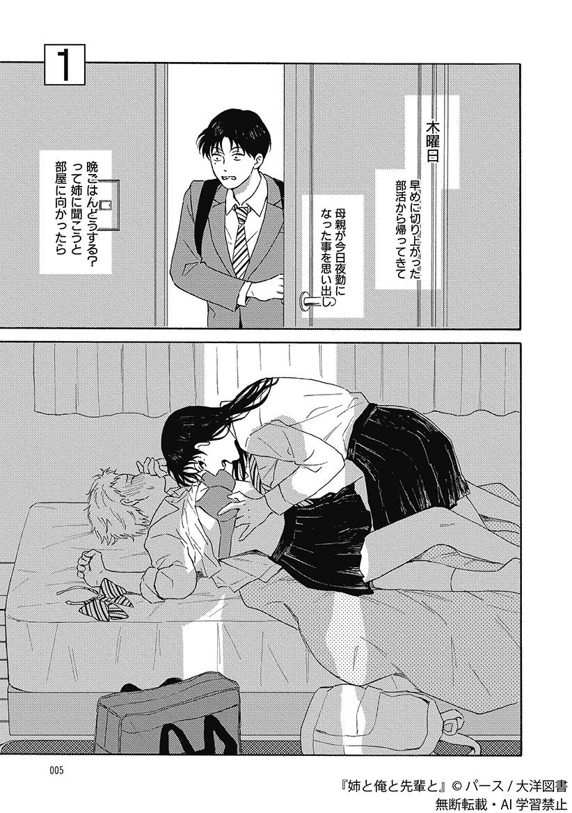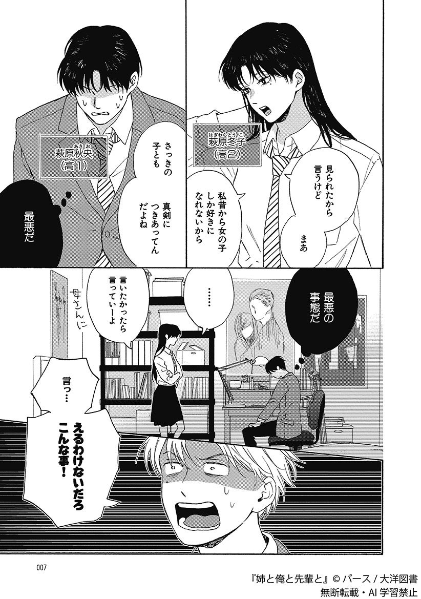 木曜日、早めに帰宅した萩原秋央(高1)は、姉・冬子(高2)が女子を押し倒しているところを