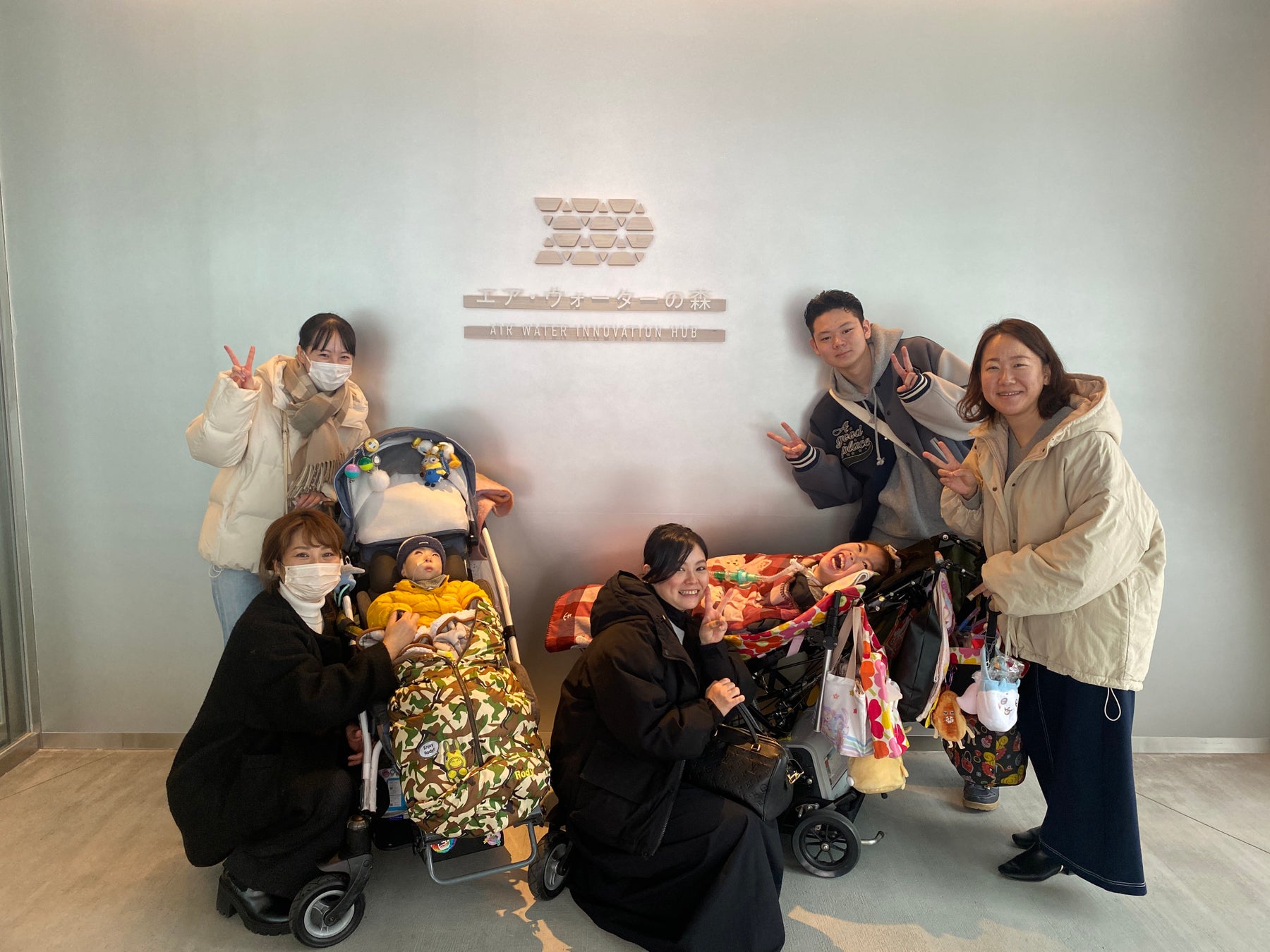 「エア・ウォーターの森」オープニングイベントに医療的ケア児家族と参加。バギーでの利用時のバリアフリー状況の視察と、看護学生と医療的ケア児の交流の場。