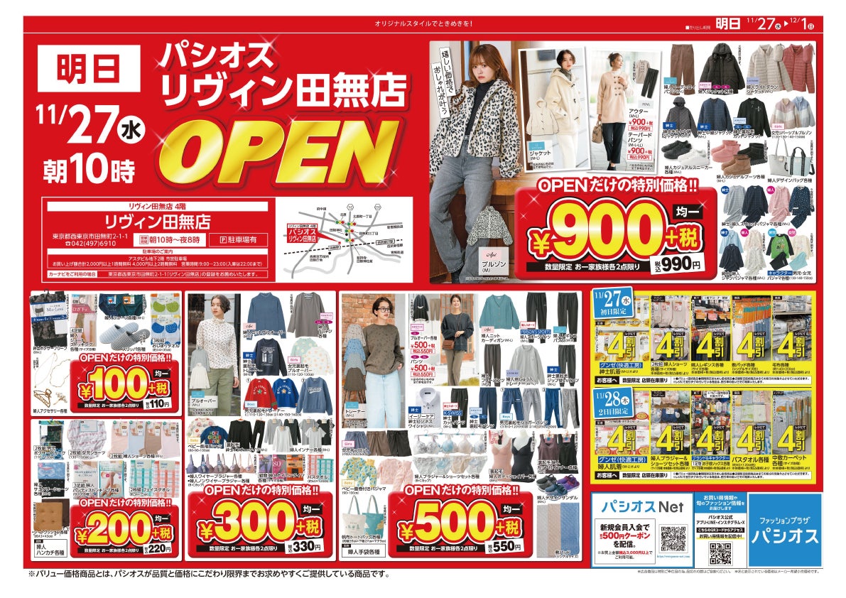 総合衣料のパシオスが、「リヴィン田無店」を11月27日(水)にOPEN!!