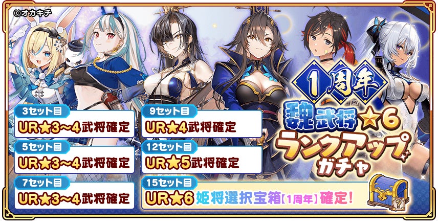 この他、各国の武将が勢揃いする国ごとのピックアップガチャや、UR姫将3体が確定で手に入る超豪華ガチャなど、戦力強化に直結するラインナップを多数ご用意しました。