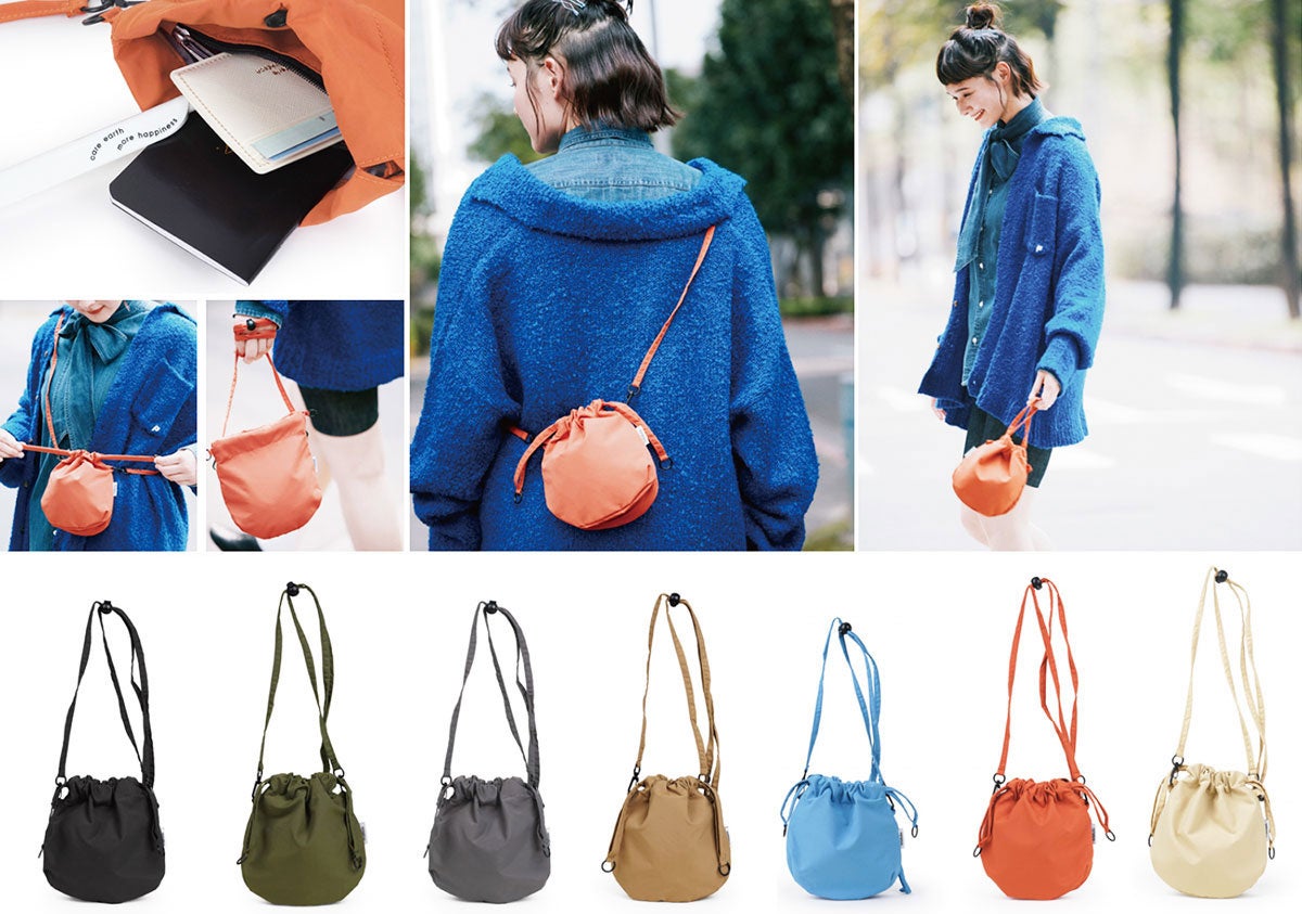 巾着タイプのキュートな2ウェイバッグ。