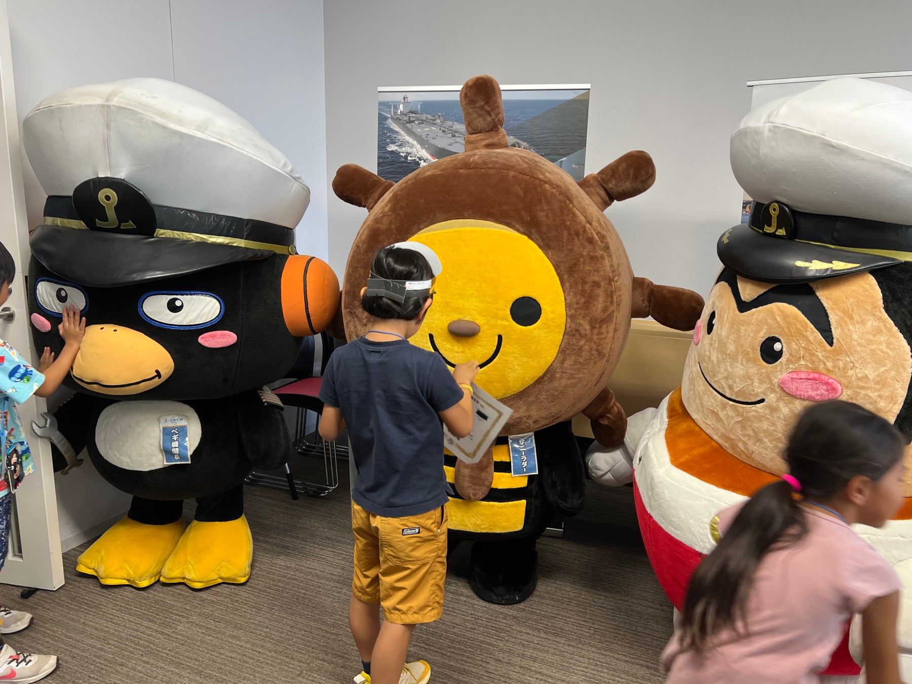 体験授業の後、子どもたちは修了証書を授与され、全日本海員組合と国際船員労務協会が共同で取り組む「J-Crew プロジェクト~やっぱり海が好き~」(注)のマスコットキャラクターと記念撮影を行いました。