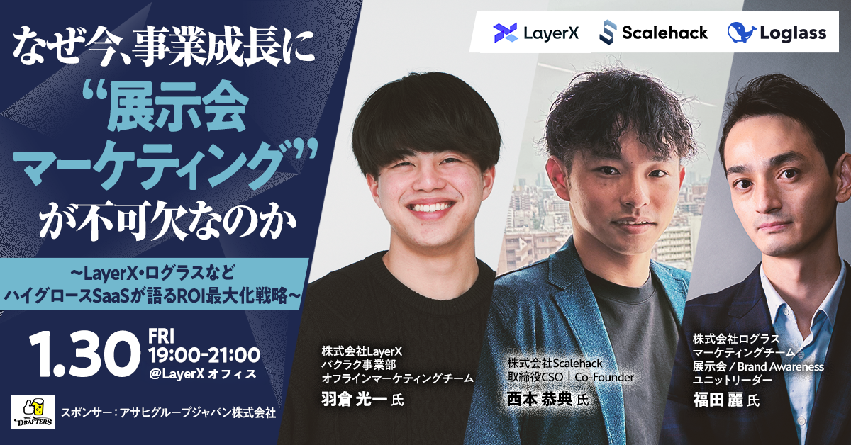 【Scalehack主催1/30(金)無料オフラインイベント】「なぜ今、事業成長に“展示会マーケティング”が不可欠なのか〜LayerX・ログラスなどハイグロースSaaSが語るROI最大化戦略〜」を開催
